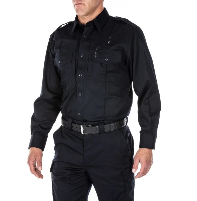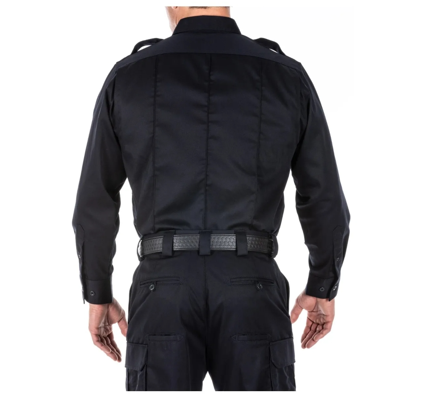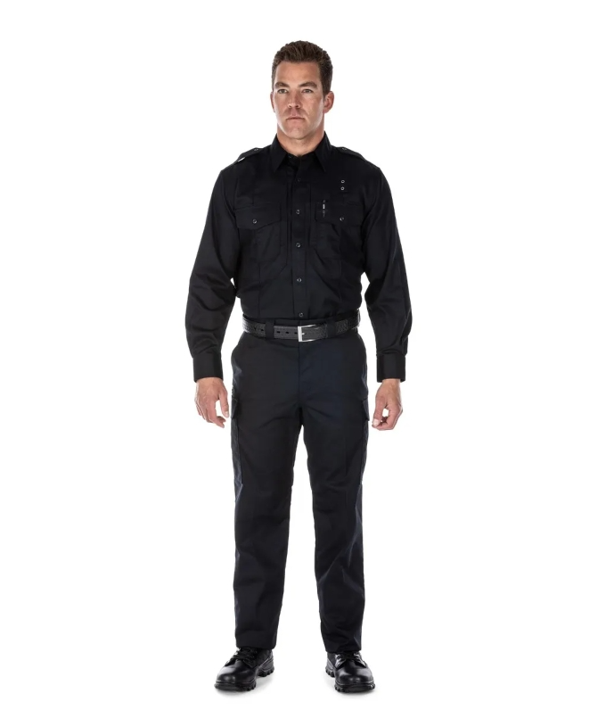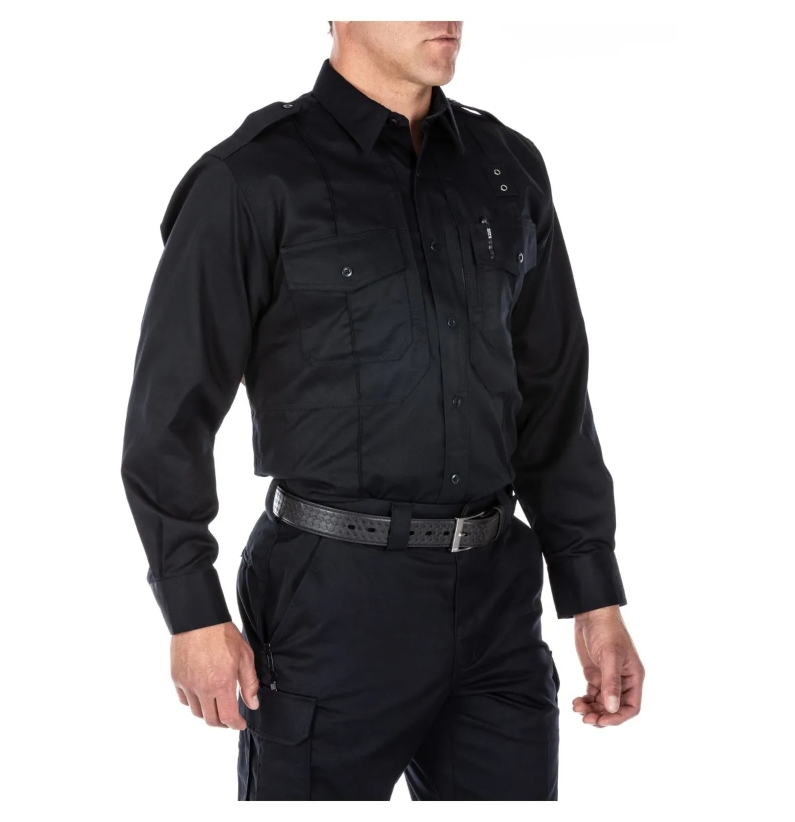 Engineered with input from operators in the field, the 5.11® Twill PDU® Class B Long Sleeve Shirt consistently exceeds the expectations of law enforcement officers around the world. Designed to stand up to consistent use in harsh duty environments, the Class B Long Sleeve Twill PDU® Shirt is crafted from our 5.78 oz. poly/cotton twill fabric for the perfect blend of rugged durability, reliable performance, and breathable comfort. A Teflon® treatment maximizes resistance against stains, moisture, and soil, our patented 5.11® Ready Pocket™ on chest for storing documents or a phone offer ample and covert storage, and a bi-swing shoulder design provides full mobility. Sewn-in military creases and integrated collar stays ensure a crisp, professional appearance in any setting. Additional features include underarm vents to keep you cool and dry, an integrated badge tab, a zippered front placket, epaulettes, and pass-through mic cord access to keep you connected.