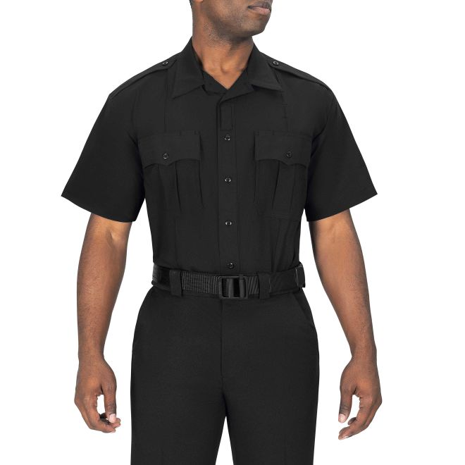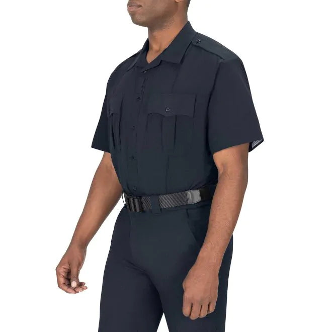 FlexPro™ performance fabric makes our fan favorite SuperShirt® even better with enhanced stretch and comfort without sacrificing the tailored appearance. Stretch mesh side panels provide extra breathability in this women's short sleeve uniform shirt.