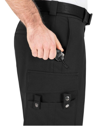 FlexRS™ fabric is a stretch ripstop featuring a durable, water-repellent treatment. Rugged and low-profile, the fabric is comfortable, breathable and fade-resistant making it easy to care for. These pants feature a diamond gusset crotch, articulated knees, quarter L-pockets and a FlexGrip silicone, stretch waistband for comfort and additional shirt grip. Lower leg pockets for gloves and functional EMT-designed cargo pockets allow removal of stethoscope, trauma shears or other accessible equipment while kneeling.