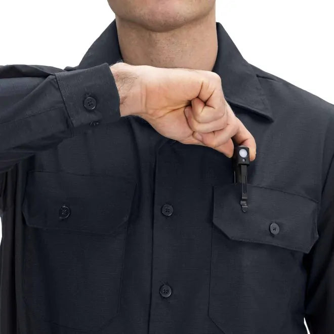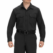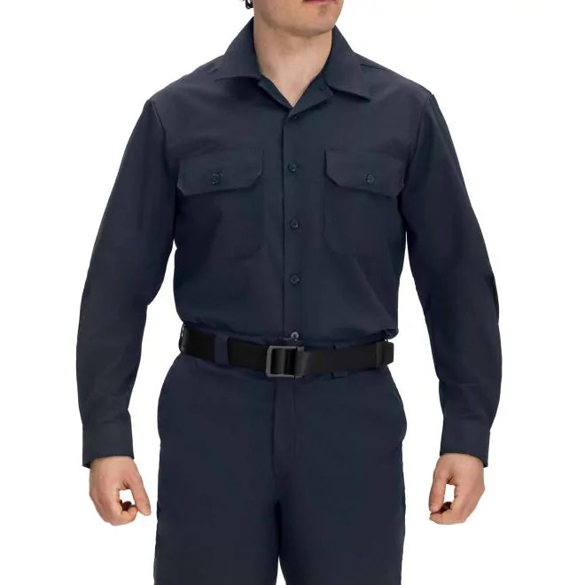 These no-frills shirts feature our breathable, durable cotton blend Ripstop fabric with a soil release finish that performs under the stress of everyday wearing and washing. The athletic pattern is engineered for mobility and comfort and the mitered patch pockets and flaps, a sport style collar, adjustable cuffs and sleeve packets, button front, back yoke, and self-lining give it a uniform appearance. The straight hem style can be worn tucked in or over the belt.