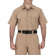These no-frills shirts feature our breathable, durable cotton blend Ripstop fabric with a soil release finish that performs under the stress of everyday wearing and washing. The athletic pattern is engineered for mobility and comfort and the mitered patch pockets and flaps, a sport style collar, adjustable cuffs and sleeve packets, button front, back yoke, and self-lining give it a uniform appearance. The straight hem style can be worn tucked in or over the belt.