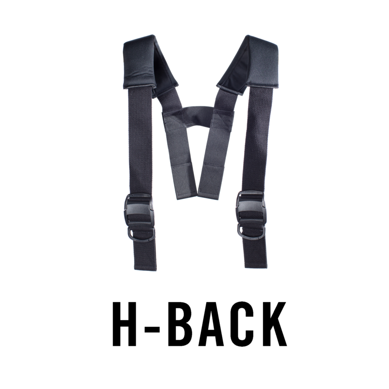 - H-Back with cam lock and post style pant attachment
