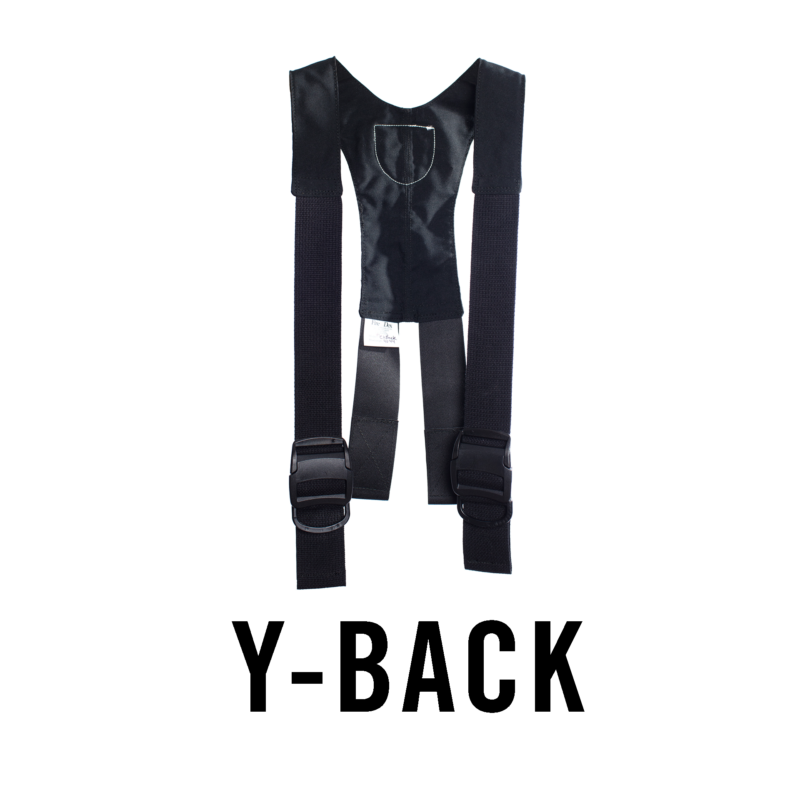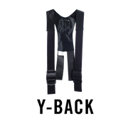 The Y-Back shape is an athletic hybrid between the traditional H-Back and X-Back suspenders and is designed to stay in place—no matter what.
