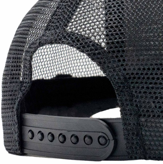 Cool and comfortable, the curved bill and front of this 6 panel mid-crown style Trucker Hat is made of an absorbent cotton blend fabric for a professional look. The breathable nylon mesh back and hidden moisture wicking sweatband keeps you dry and comfortable in warm conditions, while the adjustable snapback closure offers a secure fit.