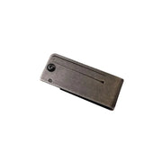 Compact stainless steel money clip is discreet and built for a lifetime. Frame lock design with tumbled black steel Tonto blade. Blade is 2” long (overall 2.5”)