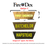 All name plates with the exception of our Fire-Dex Option-C have hook Velcro and stud/male snaps.